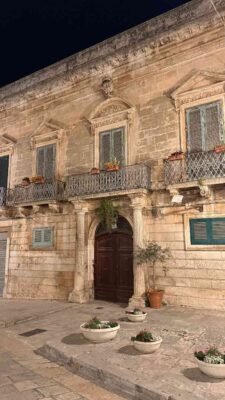 Cerramos el día en Ostuni, la «ciudad blanca» por excelencia. Encaramada sobre una colina y visible desde kilómetros, su silueta de casas encaladas coronadas por la catedral gótica es uno de los grandes postales de Puglia. Llegamos al atardecer, que resultó ser el momento perfecto: la luz dorada sobre las paredes blancas y la catedral al fondo es algo que se os quedará grabado. Cenamos en una trattoria en el casco histórico y, con el último tren perdido hace mucho, decidimos que Ostuni sería también nuestra base para la noche.